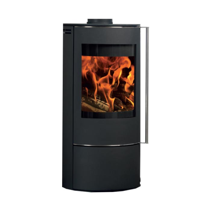 Available in matt black paint finish with a black glass top and a stunning brushed steel door handle travelling the full length of the door and along the top and the bottom of the door for a striking finish. The Solis has a 5Kw output and is designed to burn wood and smokeless fuels. Being DEFRA exempt, the Solis can burn wood even in a smoke controlled zone. Equipped with a small storage cupboard under the firebox providing a handy place to keep everything tidily out of sight and also houses the air controls to operate the stove.